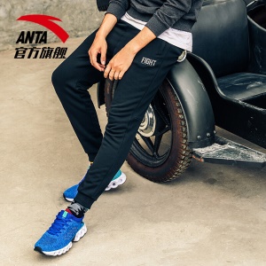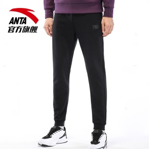 安踏 ANTA 运动裤男卫裤收口小脚加绒长裤秋冬男裤子 基础黑-3 L(男175)