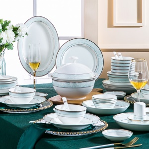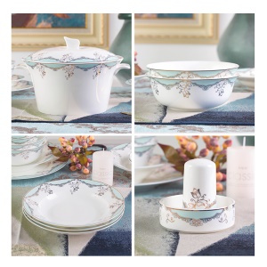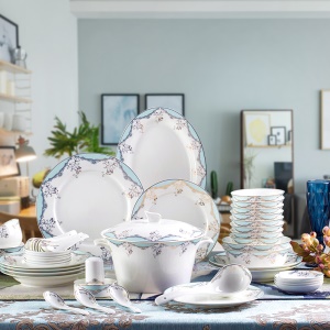 洛威 餐具套装景德镇碗碟盘套装结婚送礼 56头丽人风尚