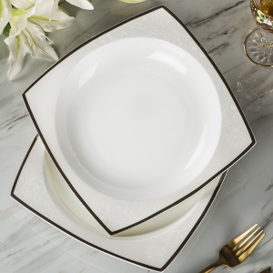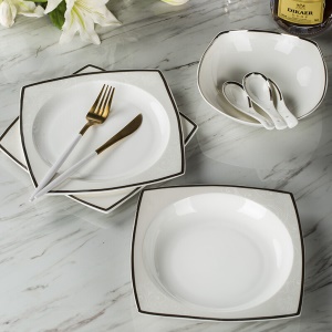 洛威 碗盘碟陶瓷餐具套装方形 18头方形洛丽塔