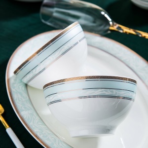 洛威 餐具套装简欧景德镇陶瓷碗碟盘套装礼盒 60头冰清