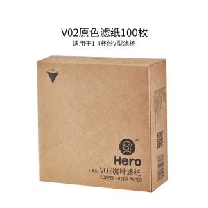 Hero咖啡滤纸 滴漏式手冲咖啡过滤纸100片V型滤杯用滤纸1-4人份白色原色随机发货