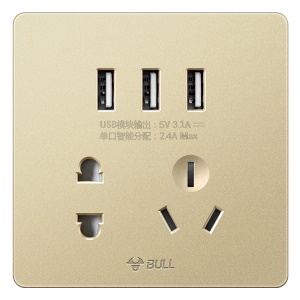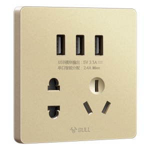 公牛(BULL) 开关插座 G12系列 五孔带3位USB接口插座86型暗装面板插座G12E536 香槟金