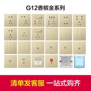 公牛(BULL) 开关插座 G12系列 二位单极二开单控开关86型暗装大面板开关G12K211 香槟金