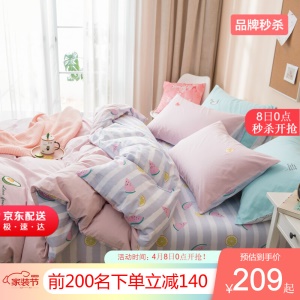 LOVO 罗莱生活出品四件套纯棉床上四件套双人全棉床上用品床单被罩套件 奇异果园 1.5米床(被套200x230cm)