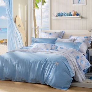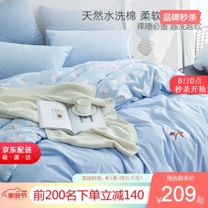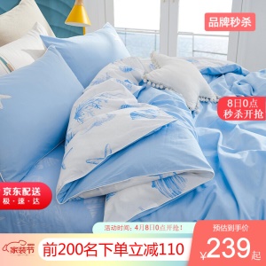 LOVO 罗莱生活出品四件套纯棉床上四件套双人全棉床上用品床单被罩套件 海边拾光 1.5米床(被套200x230cm)