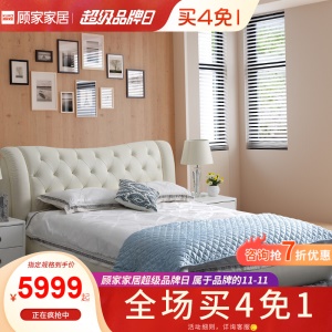顾家家居 皮床 头层牛皮双人床结婚床软床卧室家具DK.B118【30天发货】 本白色【含排骨架】 1800*2000