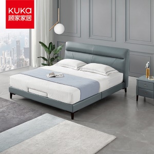 顾家家居 KUKA 真皮皮床 简约现代卧室双人床 15天发货 DK.B168 1.8m 花青蓝 高脚款