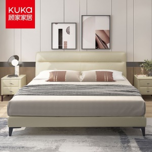 顾家家居KUKA 真皮皮床 简约现代卧室双人床 15天发货 DK.B168 1.8m 米黄色 高脚款