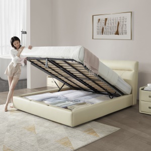 顾家家居 KUKA 真皮皮床 简约现代卧室双人床 15天发货 DK.B168 1.8m 米黄色 储物款
