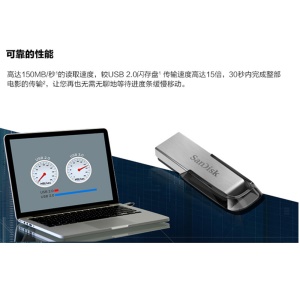 闪迪(SanDisk)64GB USB3.0 U盘 CZ73酷铄 银色 读速150MB/s 金属外壳 内含安全加密软件