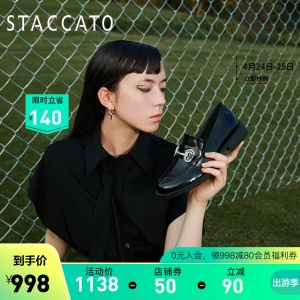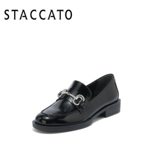 思加图2021春季新品英伦风乐福鞋单鞋女jk鞋粗跟小皮鞋9UL44AA1 黑色 38