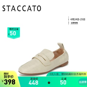 思加图奶油鞋秋季新款方头乐福鞋一脚蹬皮鞋单鞋女鞋9OW22AM0 米灰 35