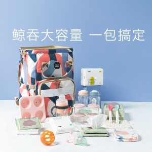 婧麒(JOYNCLEON)妈咪包妈妈背奶包双肩包多功能大容量外出时尚妈妈母婴包宝妈婴儿背包 梦幻塔【大号】【科学设计多功能时尚妈咪包】