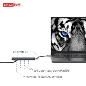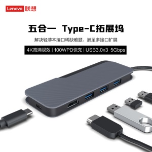 联想(lenovo)小新扩展坞 USB-C转HDMI/USB3.0 5合1 PD协议100W快充 4K30Hz高清投屏苹果华为手机笔记本通用