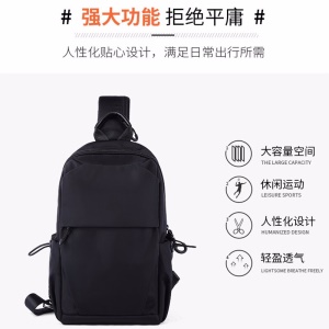 墨一 斜挎包男单肩包潮牌简约男士胸包新款韩版休闲背包帆布斜跨包学生运动潮流小腰包 酷黑色升级款