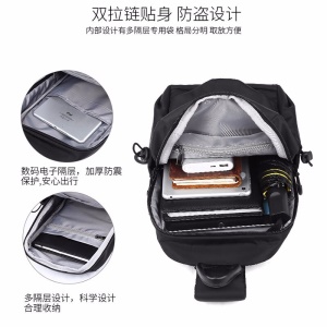 马可莱登(MARK RYDEN)单肩包男士胸包大容量斜挎包多功能9.7英寸iPad小背包旅行挎包MR7618典雅黑