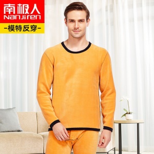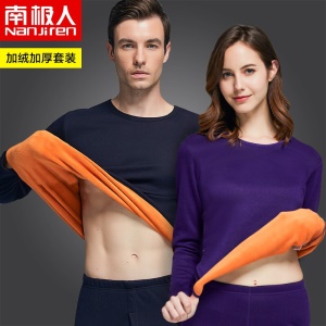 南极人 保暖内衣男女士秋衣秋裤 加厚加绒一体防寒黄金暖甲青年中老年保暖衣套装 男士藏青XL