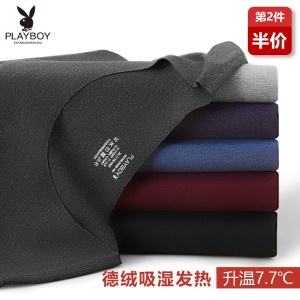 花花公子保暖内衣男发热纤维加绒无痕轻薄秋衣秋裤男德绒吸湿循环蓄热随心裁保暖套装黑色XL