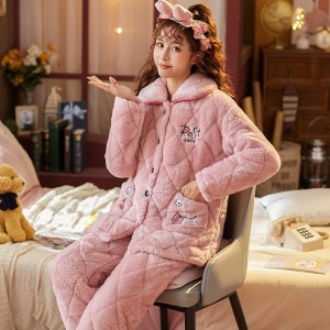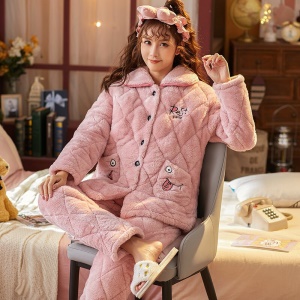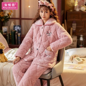 安悦萱睡衣女冬季加厚加绒三层夹棉法兰绒珊瑚绒保暖女士冬天可外穿家居服套装 X5823 L码建议身高157-165体重100-120