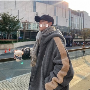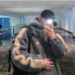 奈加图港风羊羔毛绒外套男冬季韩版潮流棉衣男青少年棉服ins外套男 杏色 水果羊羔毛 L 120-140斤