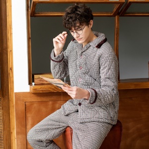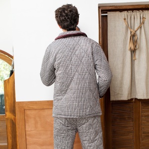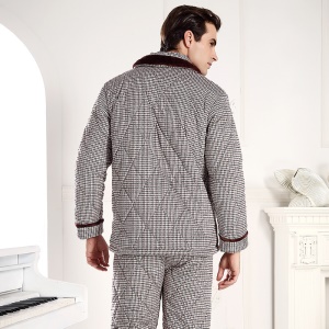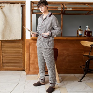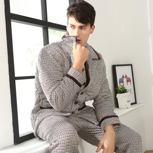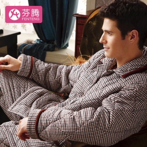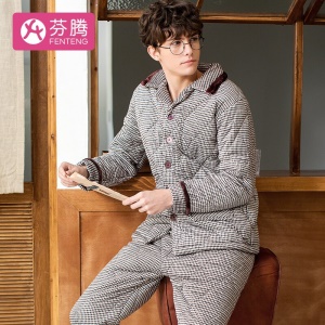 芬腾 睡衣男加厚三层夹棉经典格纹翻领秋冬家居服男士睡衣Q9981750652 咖啡 XL