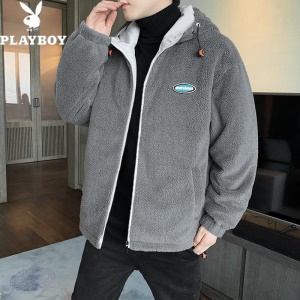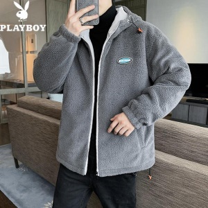 花花公子棉衣男秋冬季新款潮流百搭羊羔绒加绒加厚防风保暖外套绵袄子夹克中青年学生上衣服男装男士 深灰 XL
