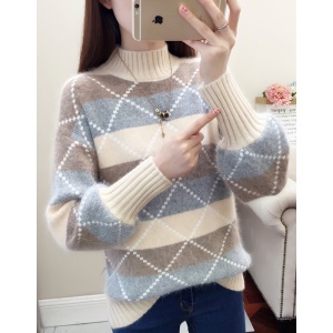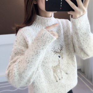 南星点点毛衣女针织衫2021秋冬季新款宽松半高领套头打底衫韩版长袖百搭上衣 O10172白色 均码【75-150斤】