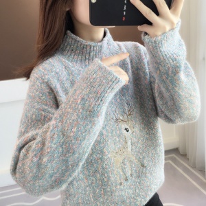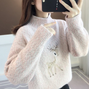 纯迩雪尼尔半高领毛衣女2021年冬季新款针织衫女宽松外穿慵懒秋冬加厚女装打底上衣013 花米色 L