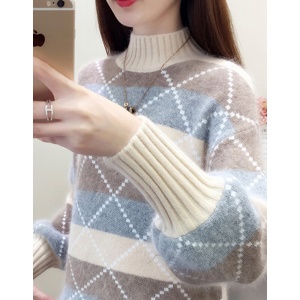 苏洛琳毛衣女外套21年新款针织衫女士秋装女装打底衫女式春秋冬季宽松小香风半高领学生上衣服时尚长袖 灰色 均码