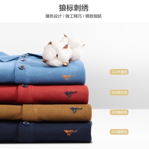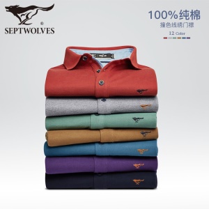 七匹狼长袖t恤男2021秋季新款男士翻领纯棉polo保罗衫男装衣服纯色体恤男式打底秋装 101藏青色 175/92A(XL)