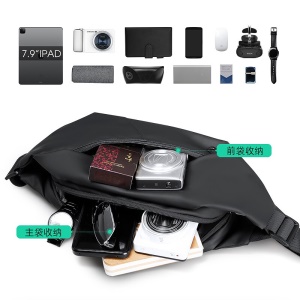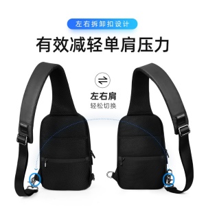 马可莱登(MARK RYDEN)单肩包男士胸包大容量斜挎包多功能9.7英寸iPad小背包旅行挎包MR7618典雅黑