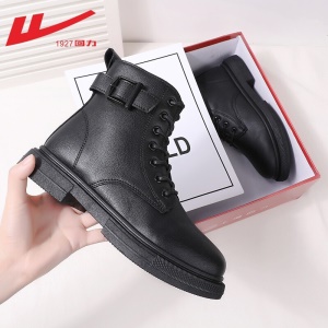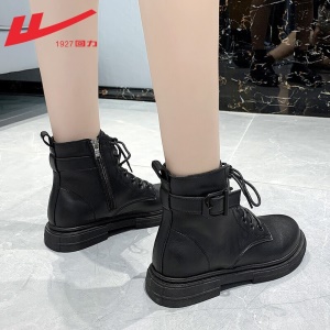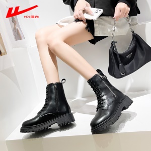 回力女鞋 马丁靴女士短靴女2021秋季新款英伦风单靴潮ins酷百搭薄款厚底靴子女 0295黑色 请选择正确尺码