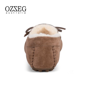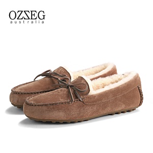 澳洲OZZEG 加绒豆豆鞋女冬季冬款羊皮毛一体毛毛鞋平底棉单鞋防滑孕妇鞋真皮保暖乐福鞋 咖啡色 37