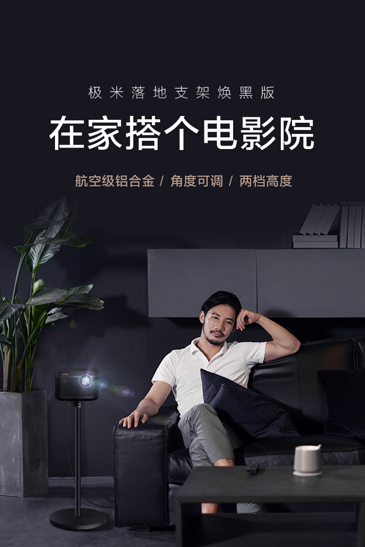 极米 (XGIMI )落地支架 焕黑版(F063S)投影机专用(大底盘更稳固 360°角度可调)更多适配咨询客服