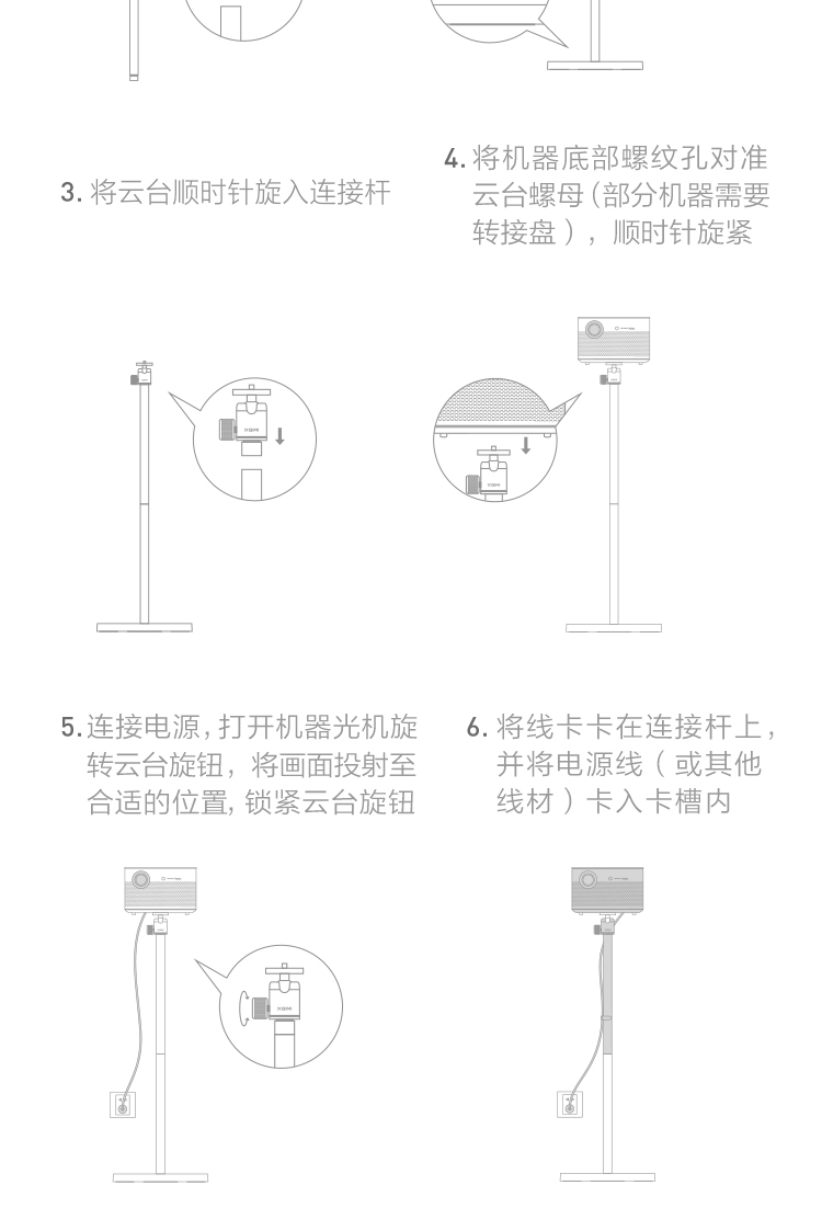 包装清单:线夹*1,支撑杆*2,云台*1,底座*1,说明书*1