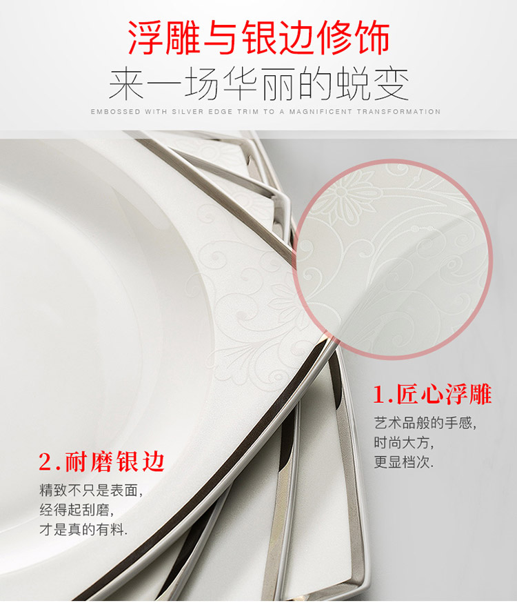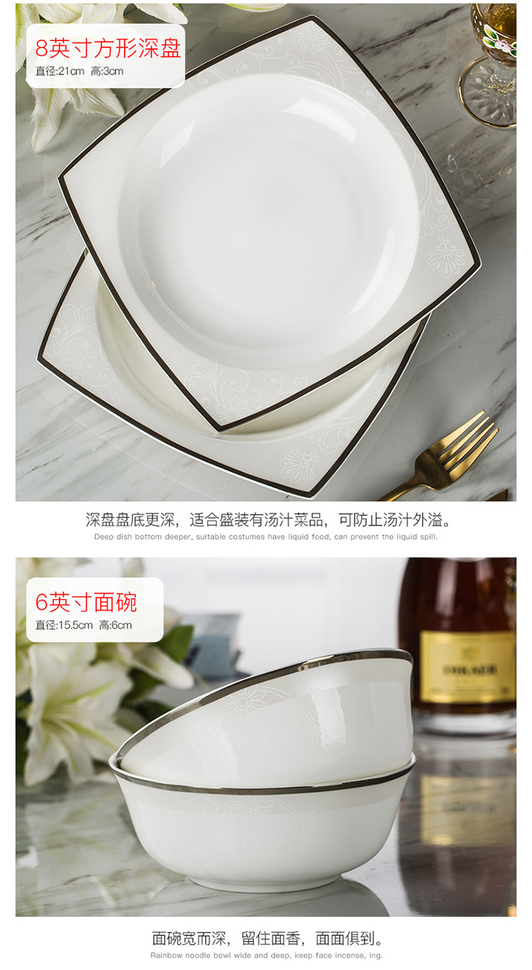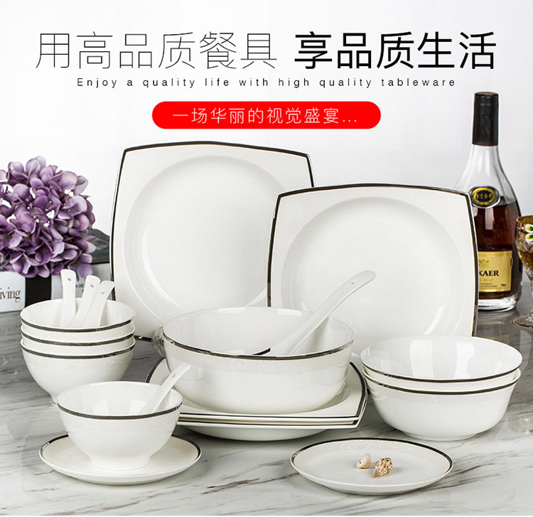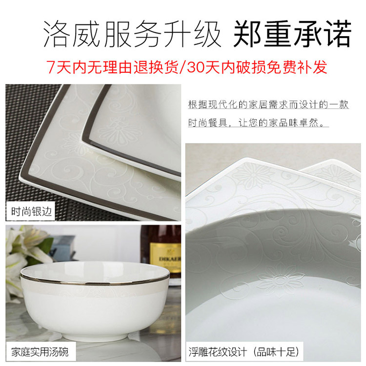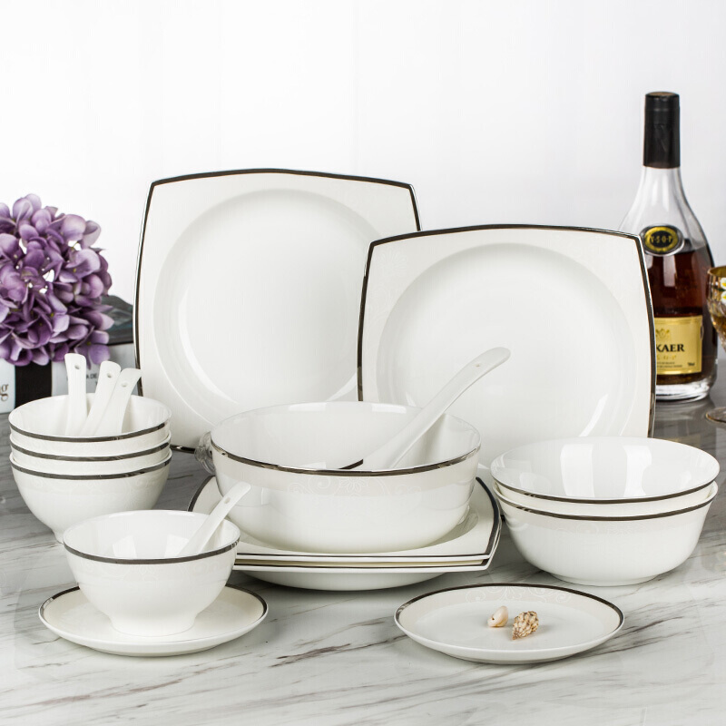 商品名称:洛威 碗盘碟陶瓷餐具套装方形 18头方形洛丽塔