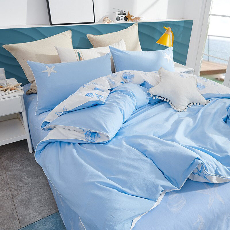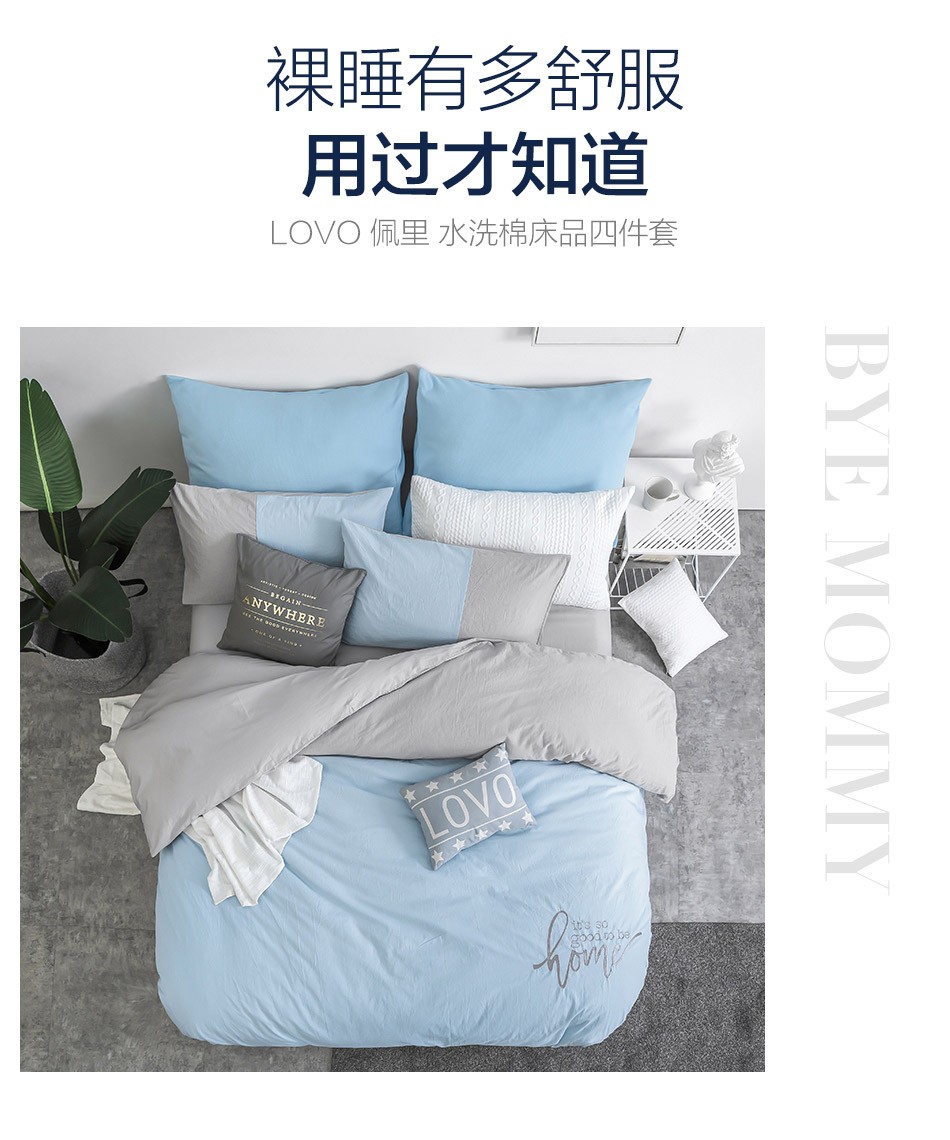 商品名称:LOVO 罗莱生活出品四件套纯棉床上四件套双人全棉床上用品床单被罩套件 海边拾光 1.5米床(被套200x230cm)