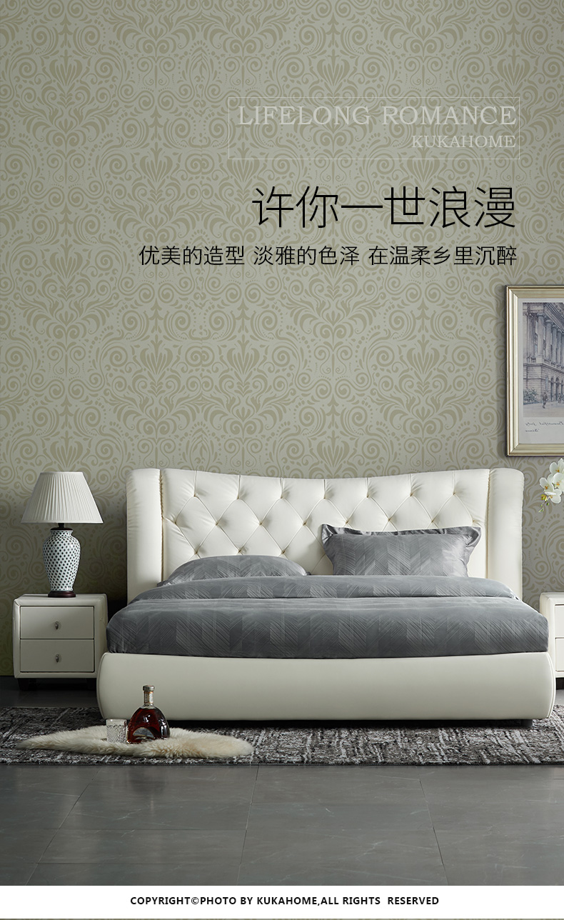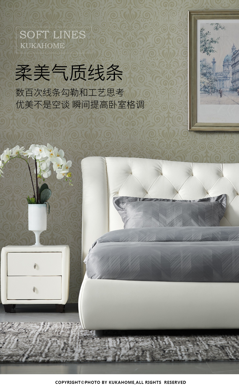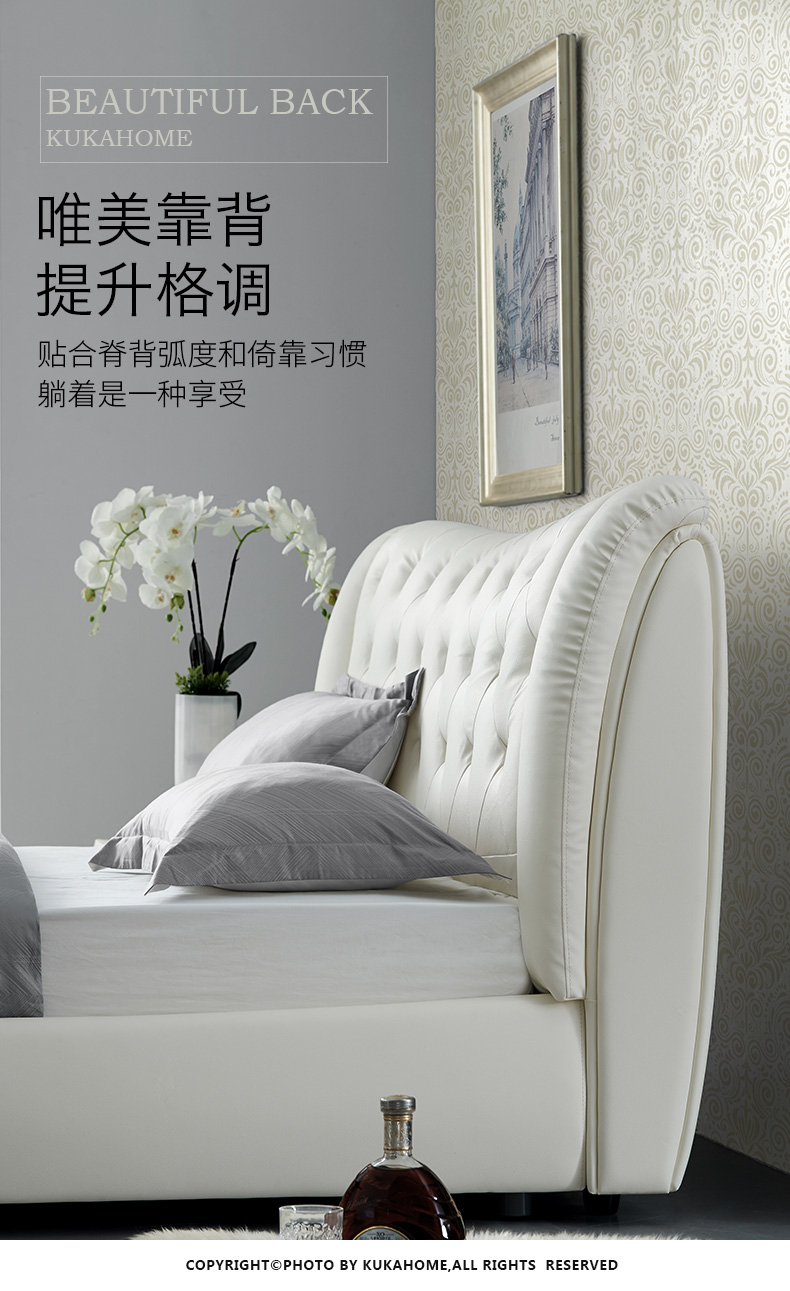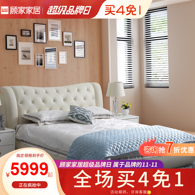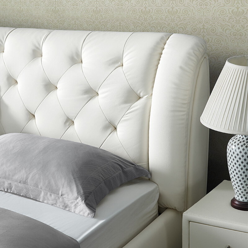 商品名称:顾家家居 皮床 头层牛皮双人床结婚床软床卧室家具DK.B118【30天发货】 本白色【含排骨架】 1800*2000