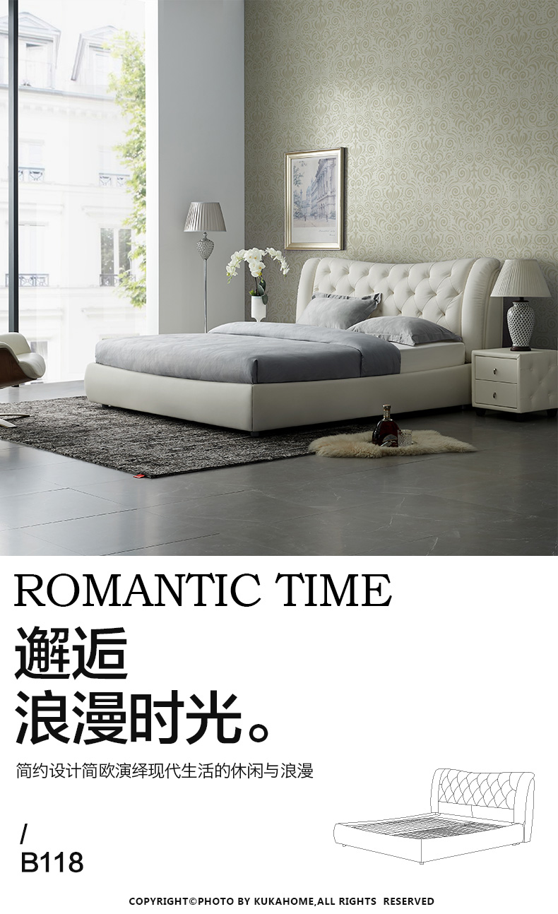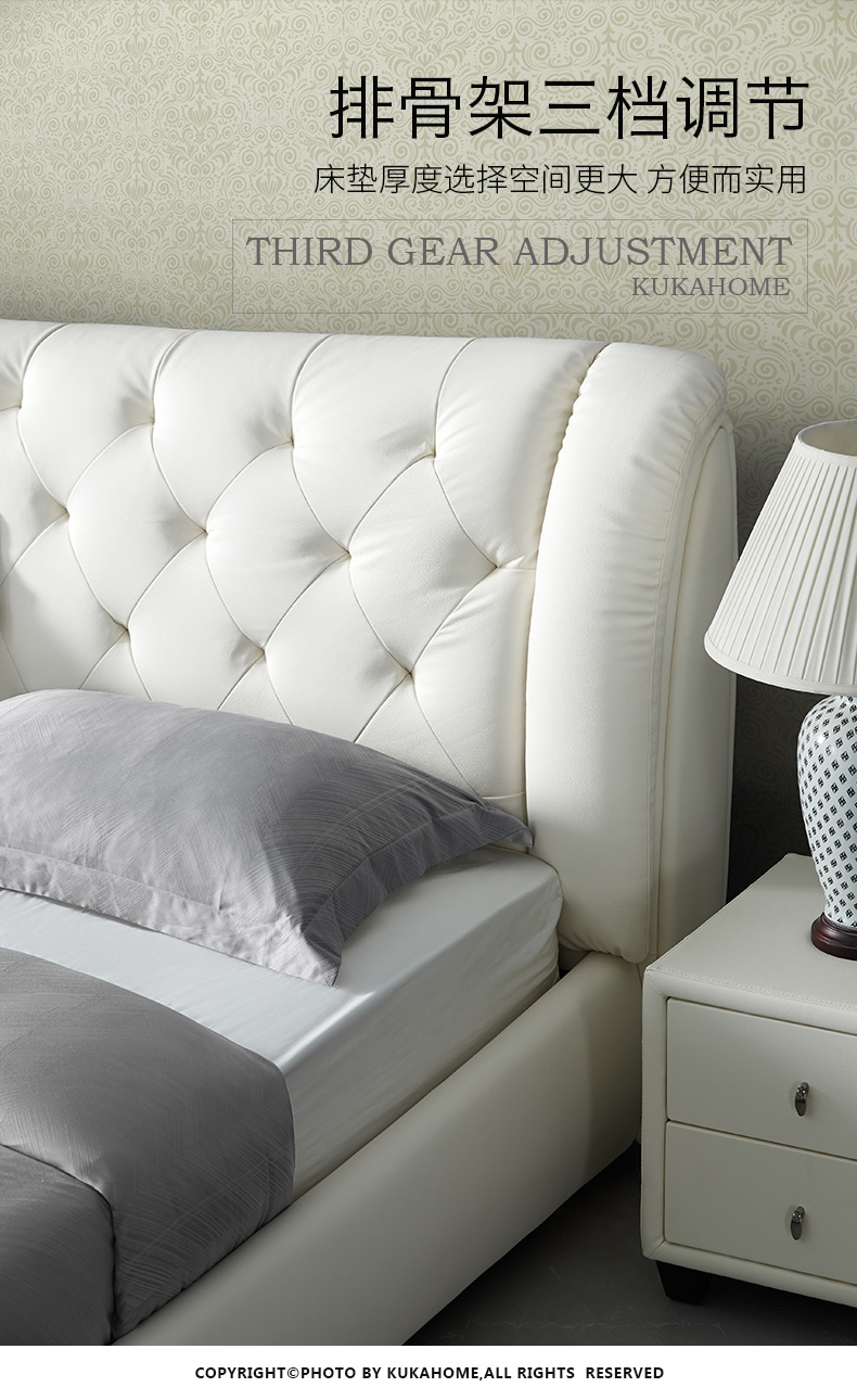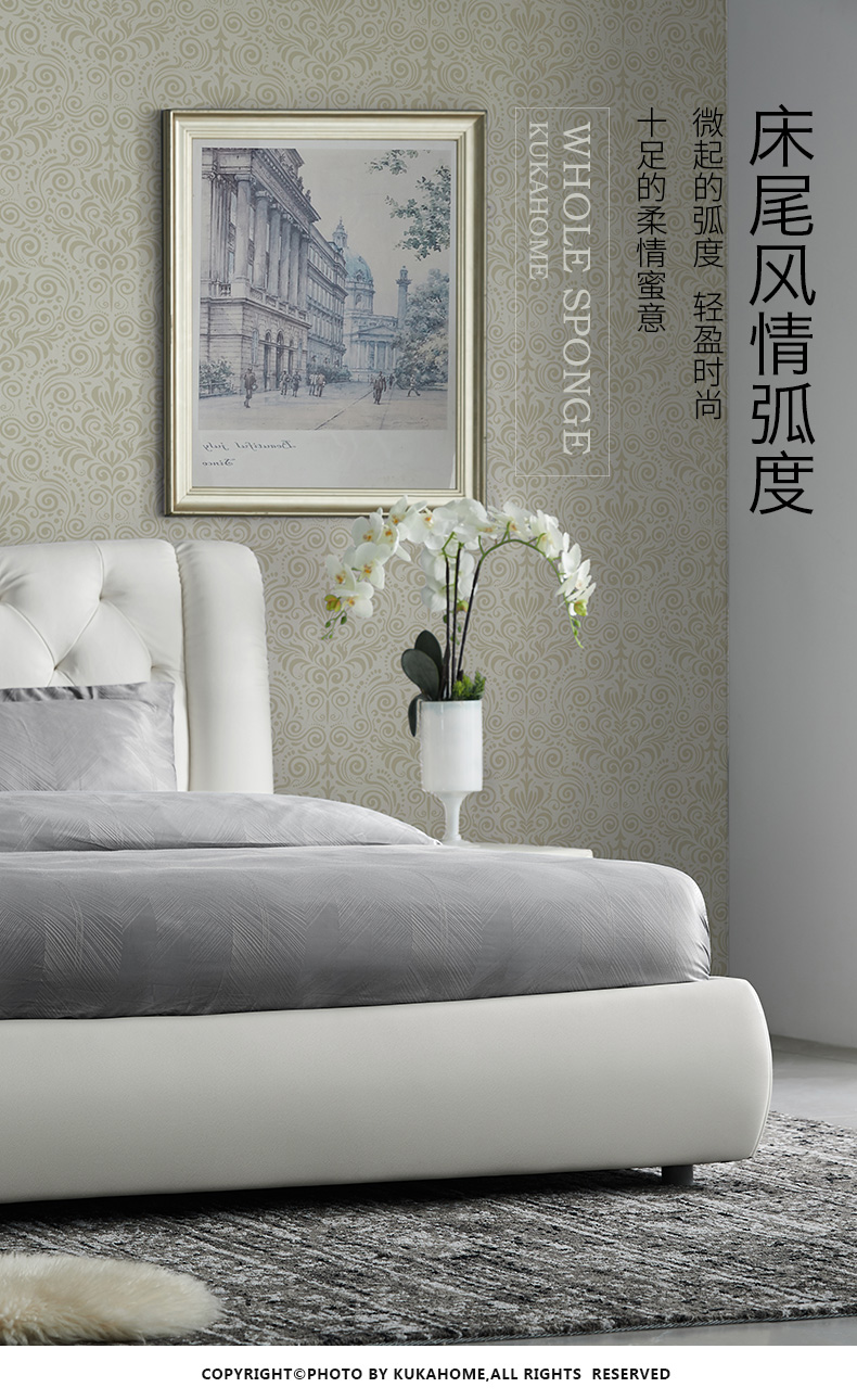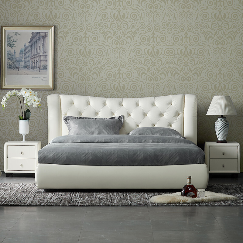 商品名称:顾家家居 皮床 头层牛皮双人床结婚床软床卧室家具DK.B118【30天发货】 本白色【含排骨架】 1800*2000
