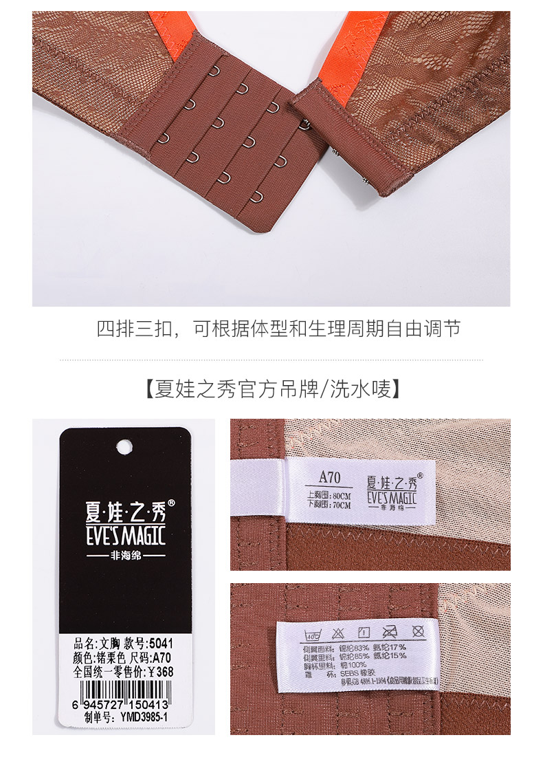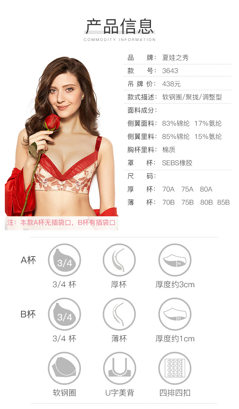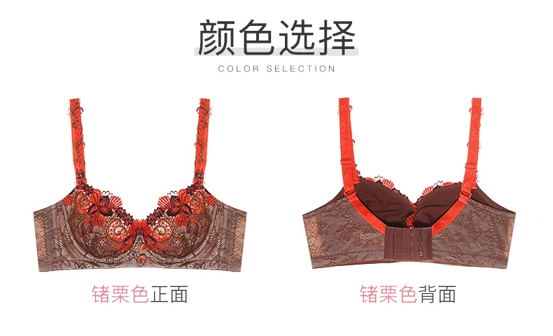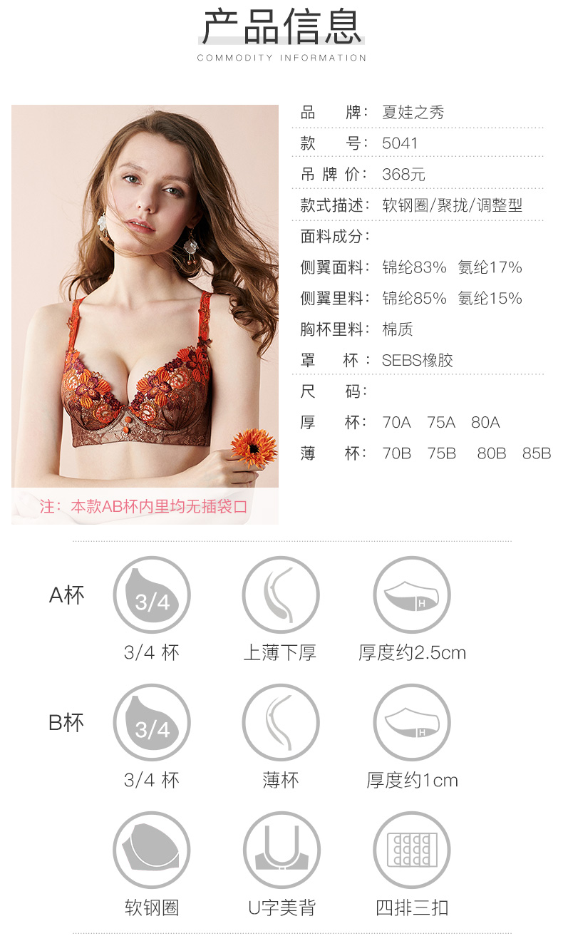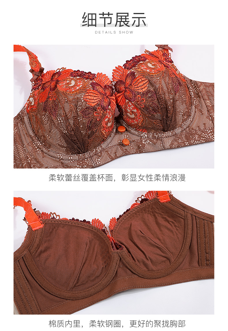 商品名称:【商场同款】夏娃之秀文胸 花朵刺绣软钢圈小胸聚拢上托性感蕾丝女士内衣 锗栗色 70A=32A上薄下厚杯