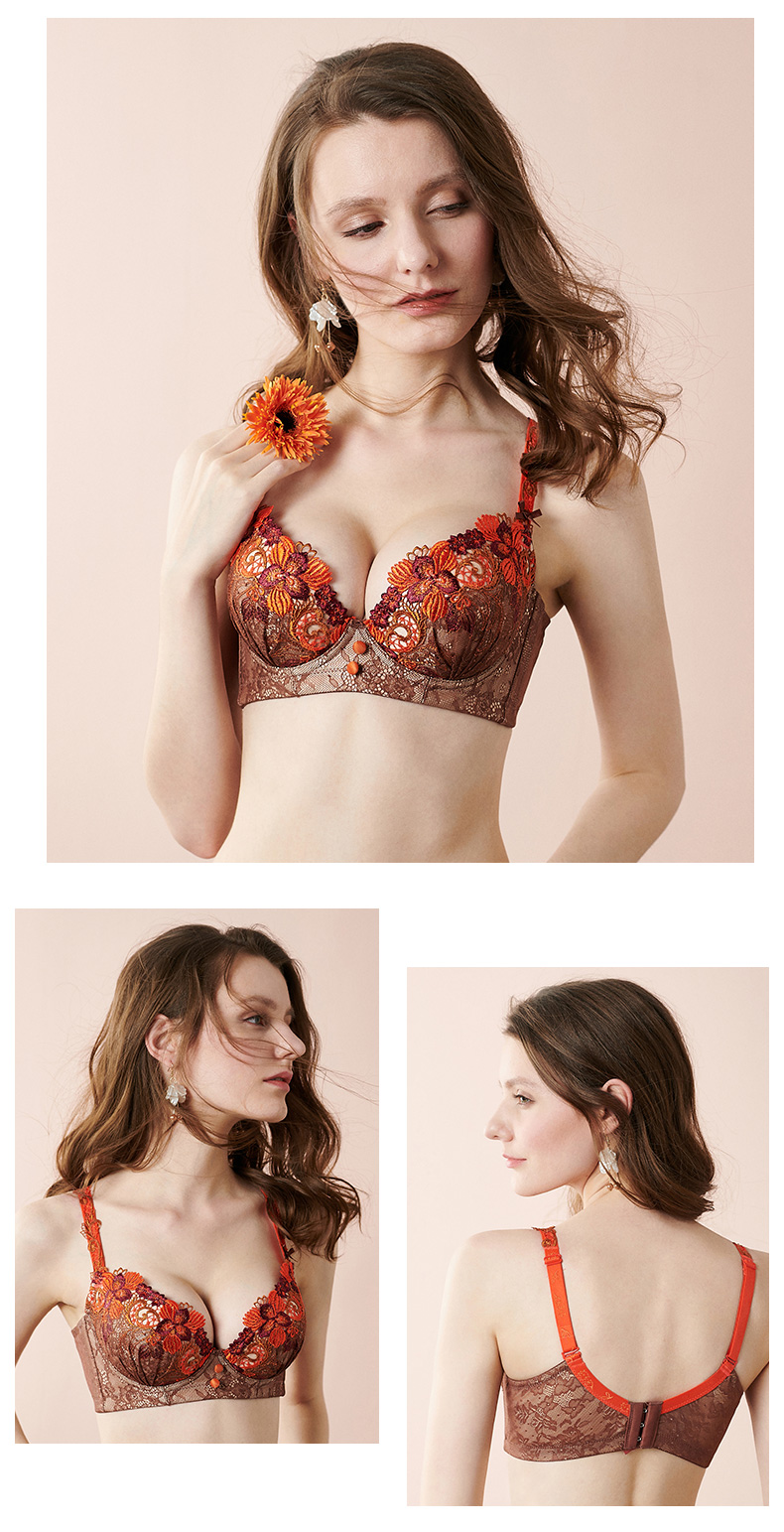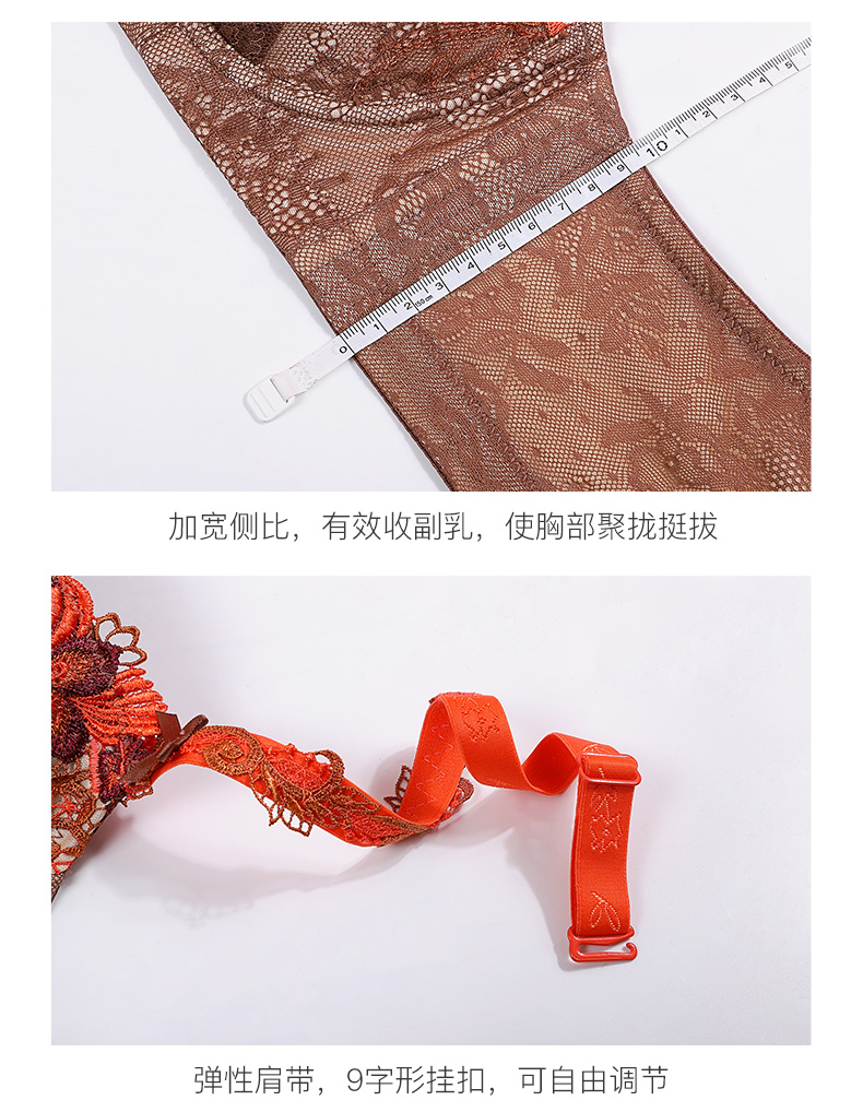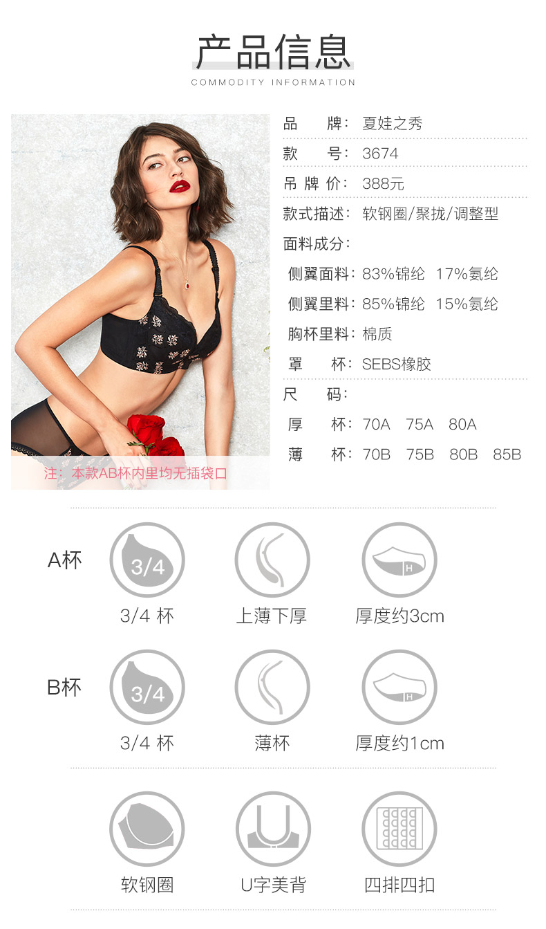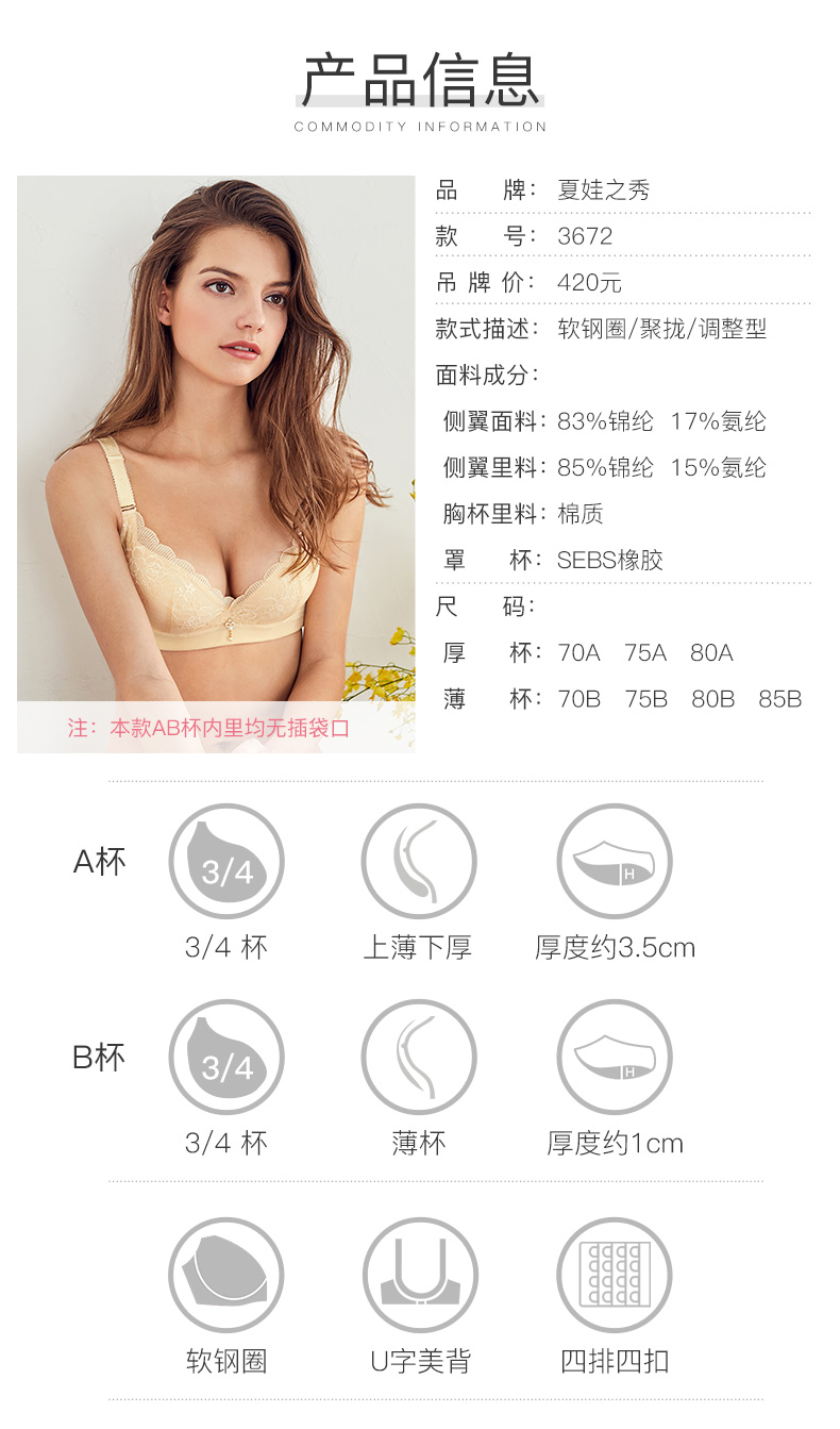 商品名称:【商场同款】夏娃之秀文胸 花朵刺绣软钢圈小胸聚拢上托性感蕾丝女士内衣 锗栗色 70A=32A上薄下厚杯
