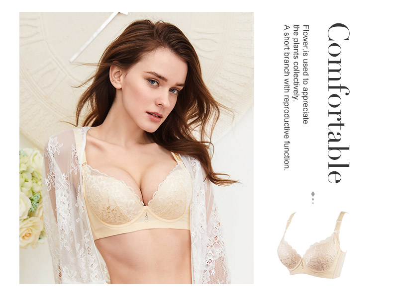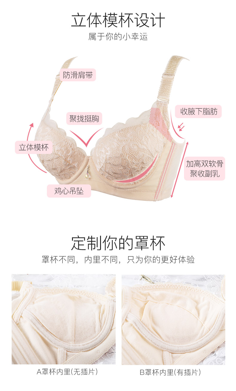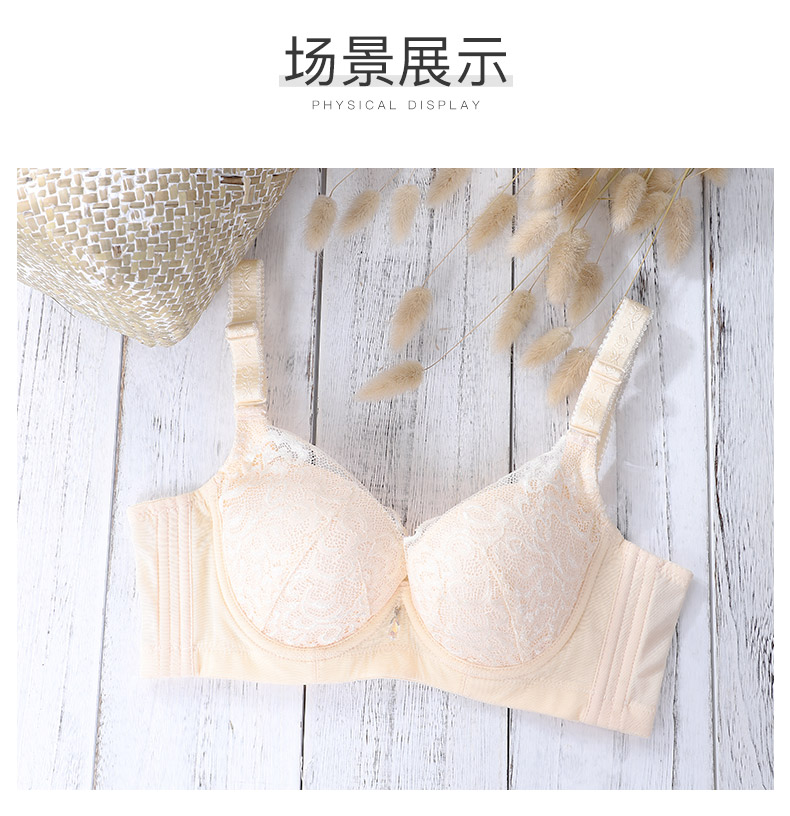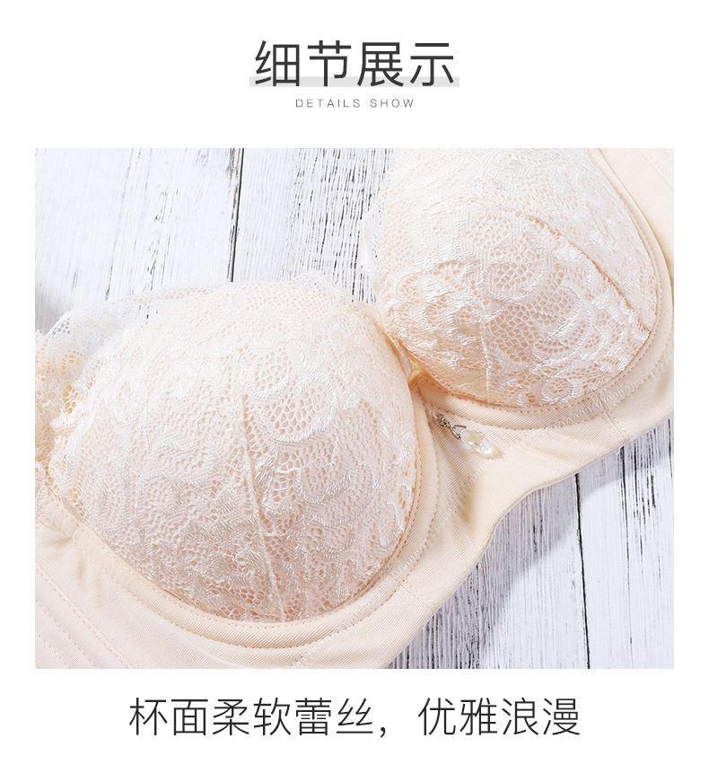 商品名称:夏娃之秀聚拢文胸3/4杯蕾丝胸罩上薄下厚调整型小胸内衣收副乳无海绵文胸8009 肤色 70B=32B薄杯
