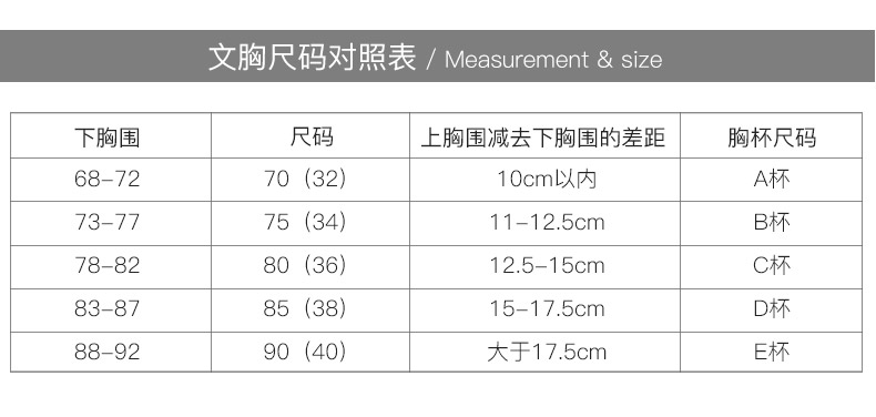 胸围尺码:70B