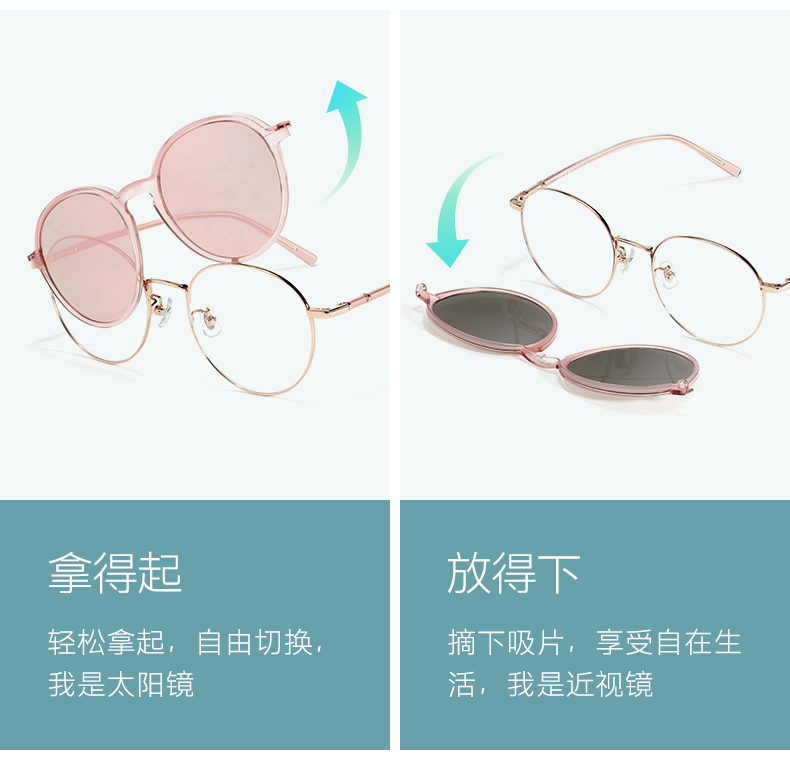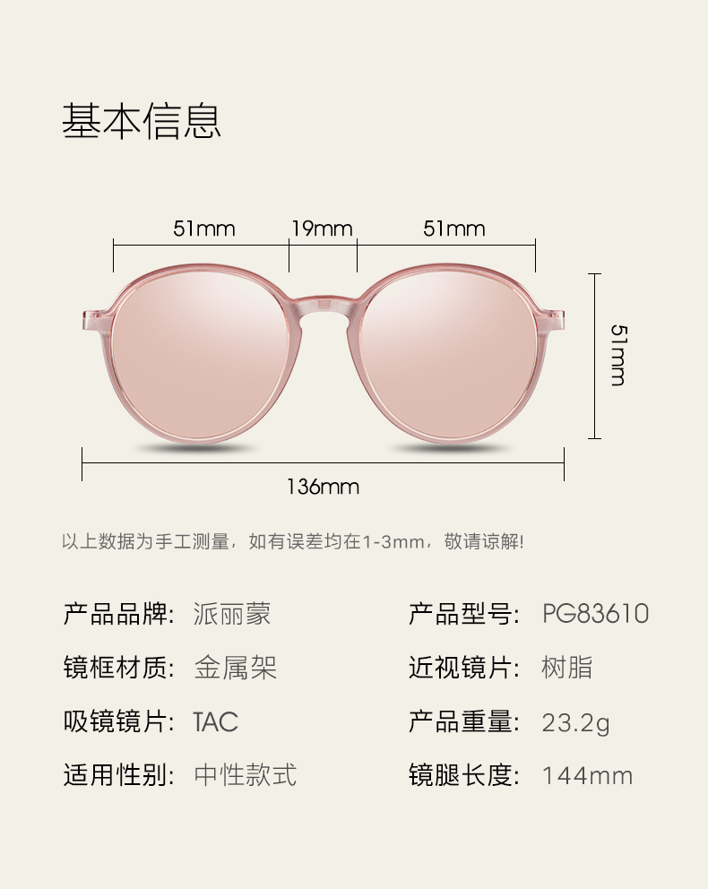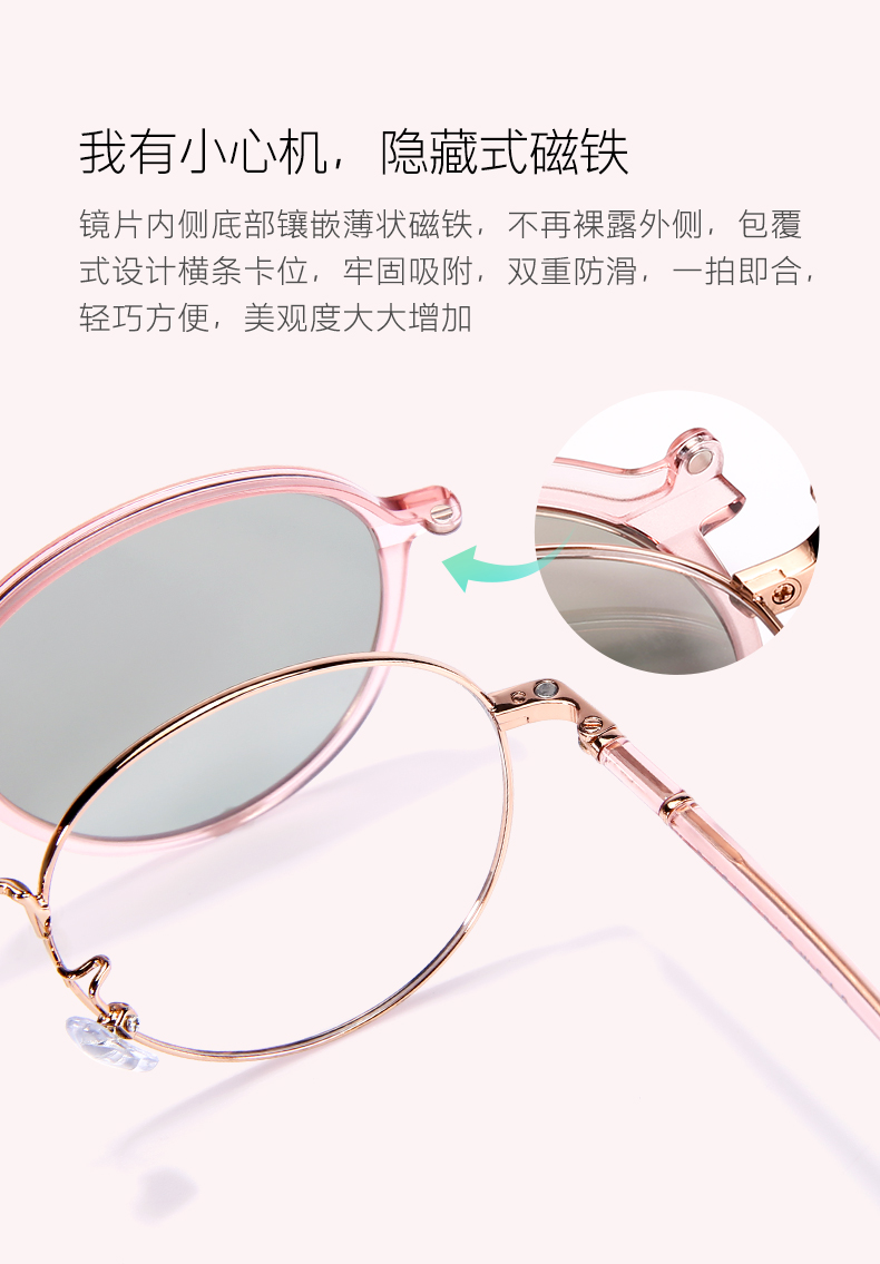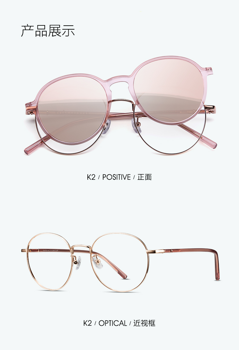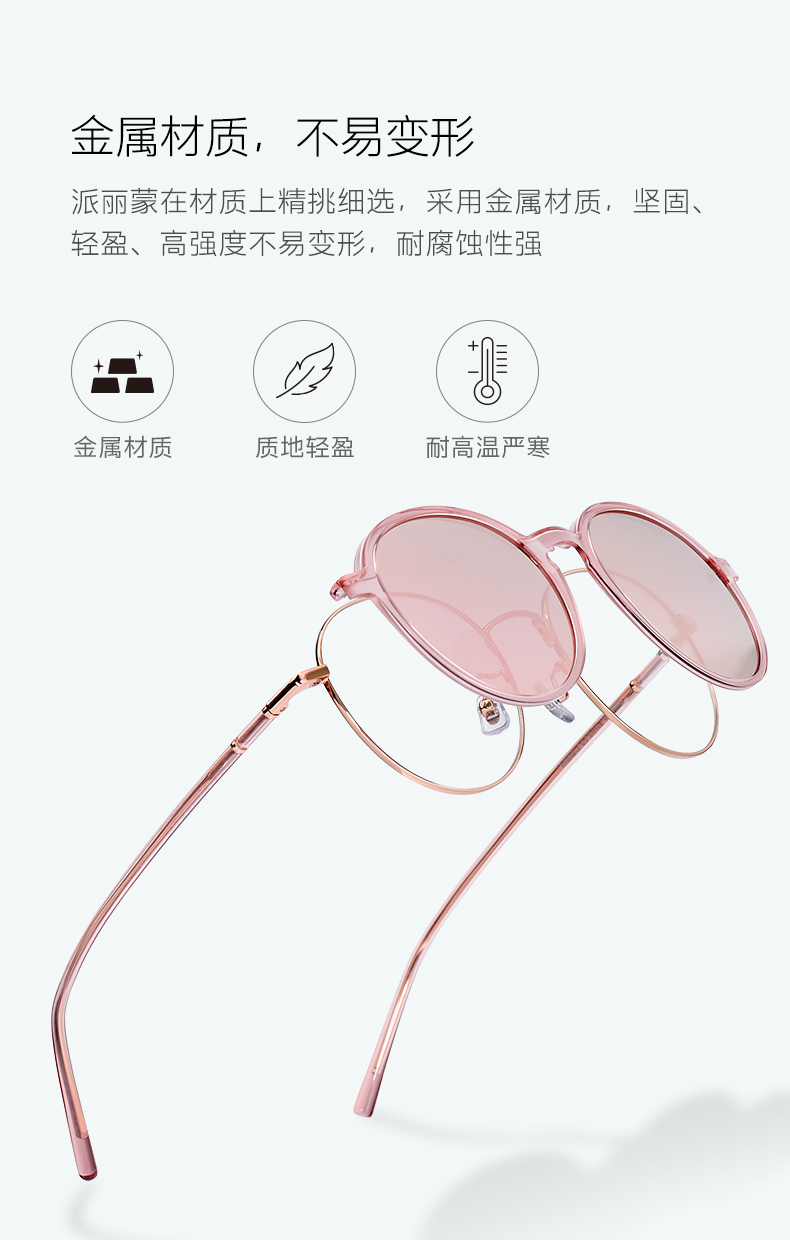 商品名称:派丽蒙偏光磁吸套镜女防紫外线近视墨镜可配度数眼镜架轻眼镜框 83610 K2-玫瑰金
