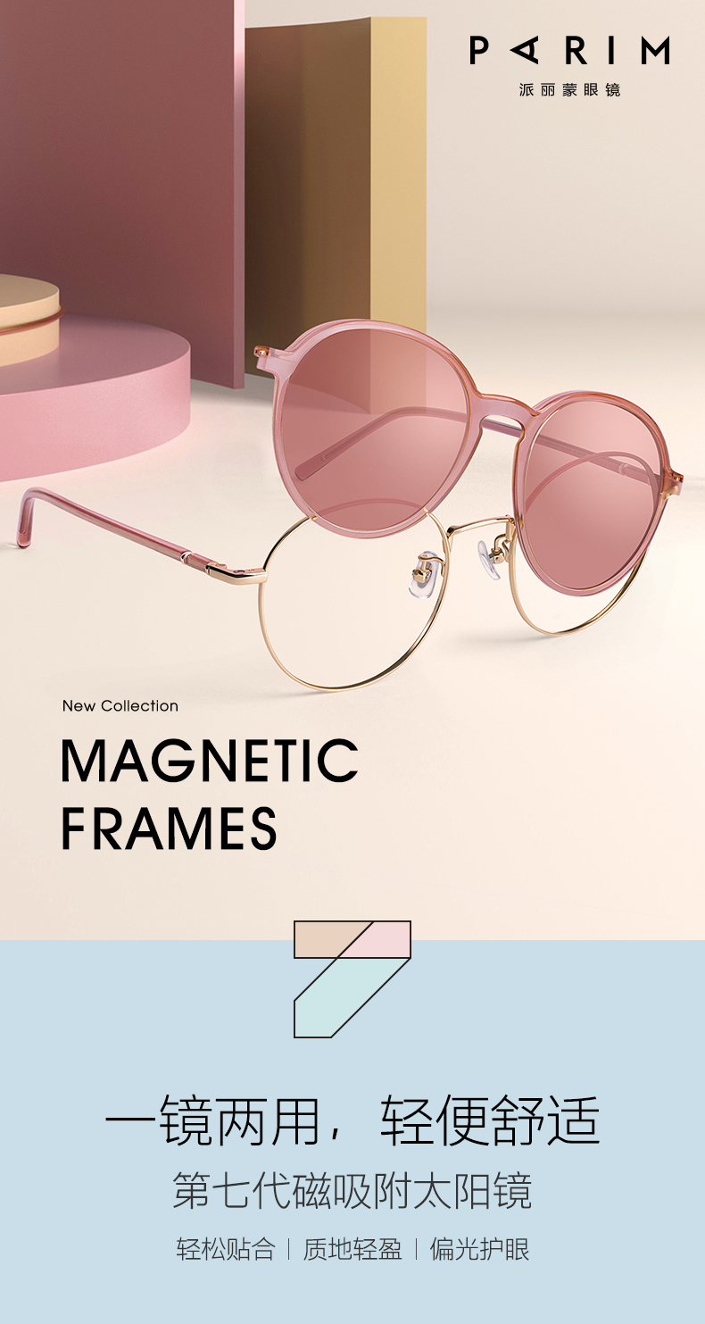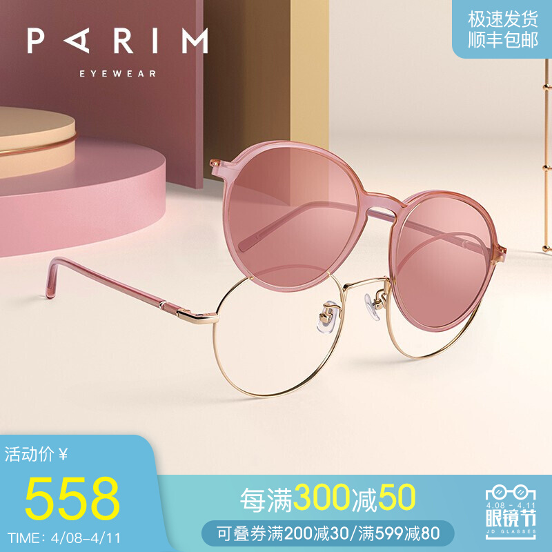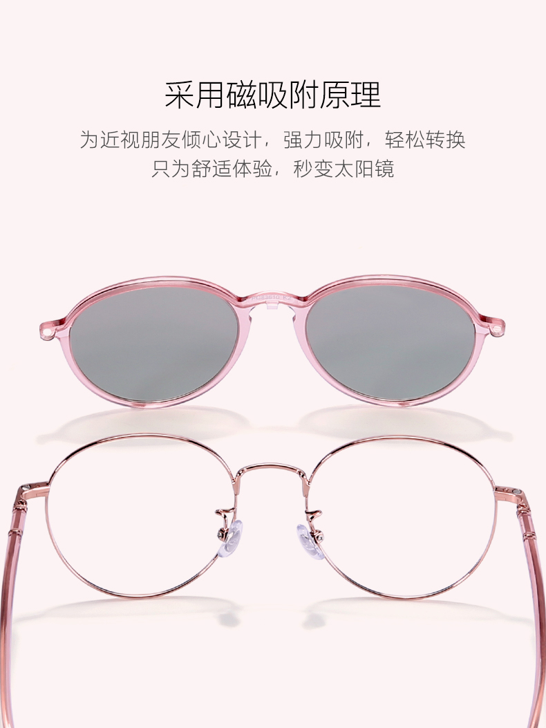 派丽蒙偏光磁吸套镜女防紫外线近视墨镜可配度数眼镜架轻眼镜框 83610 K2-玫瑰金