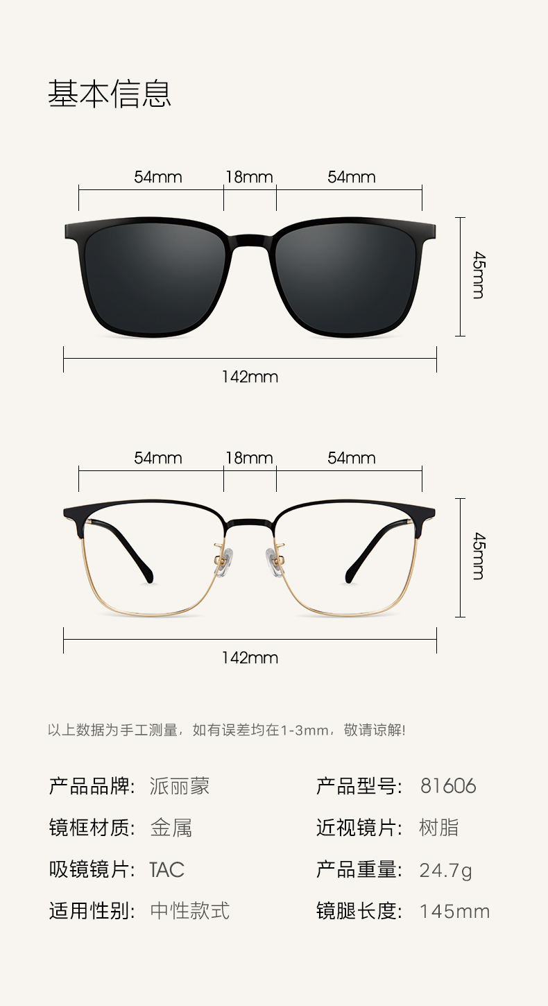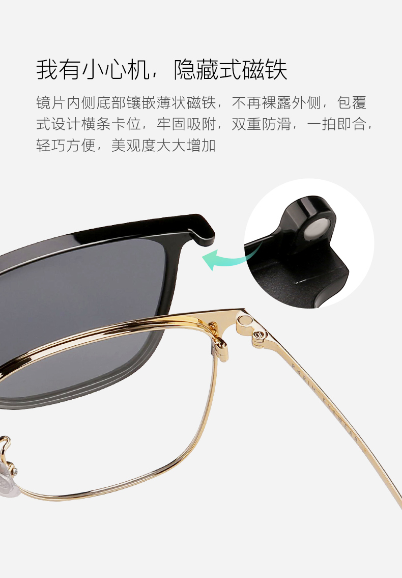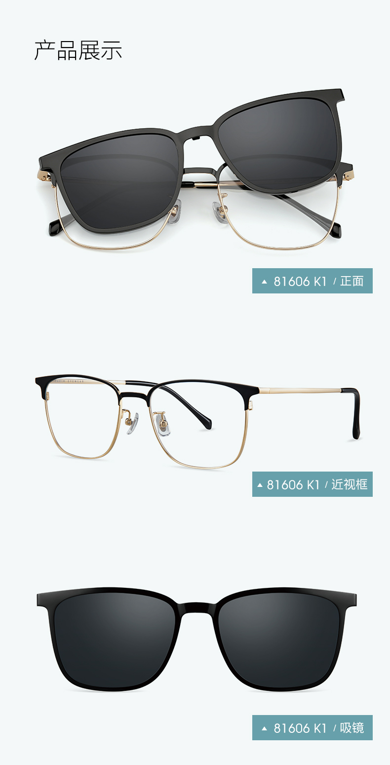 商品名称:近视眼镜女磁吸墨镜夹片一镜两用派丽蒙新品偏光近视墨镜时舒适轻便眼镜框男 81606 K1-主框:金/黑色;吸镜:黑
