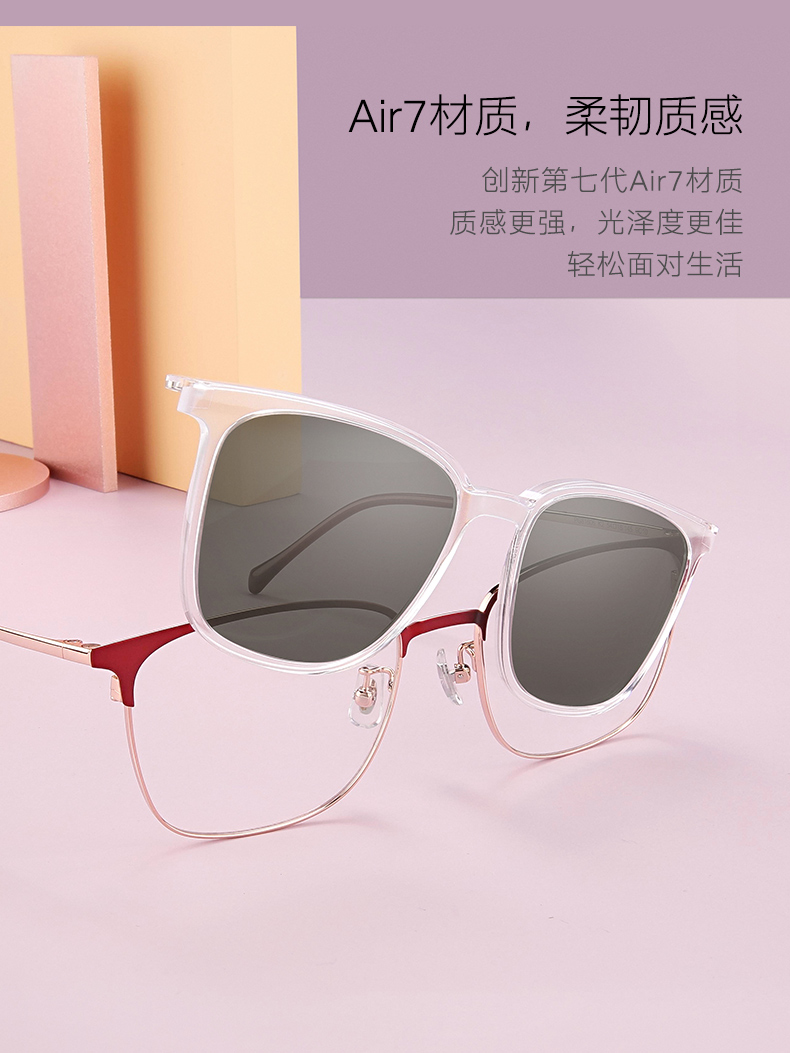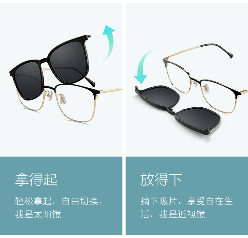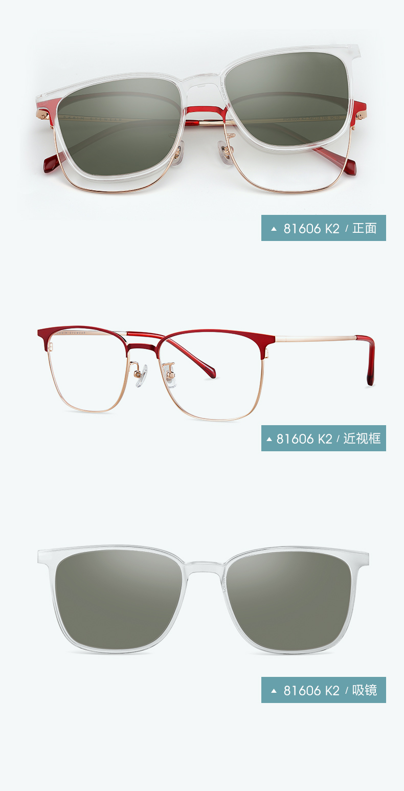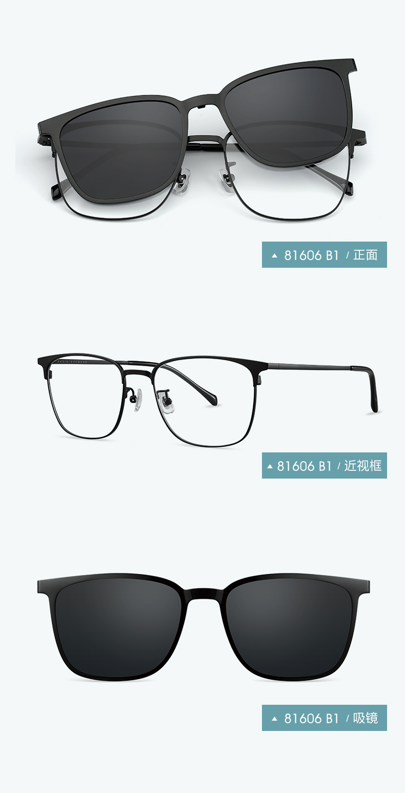 商品名称:近视眼镜女磁吸墨镜夹片一镜两用派丽蒙新品偏光近视墨镜时舒适轻便眼镜框男 81606 K1-主框:金/黑色;吸镜:黑