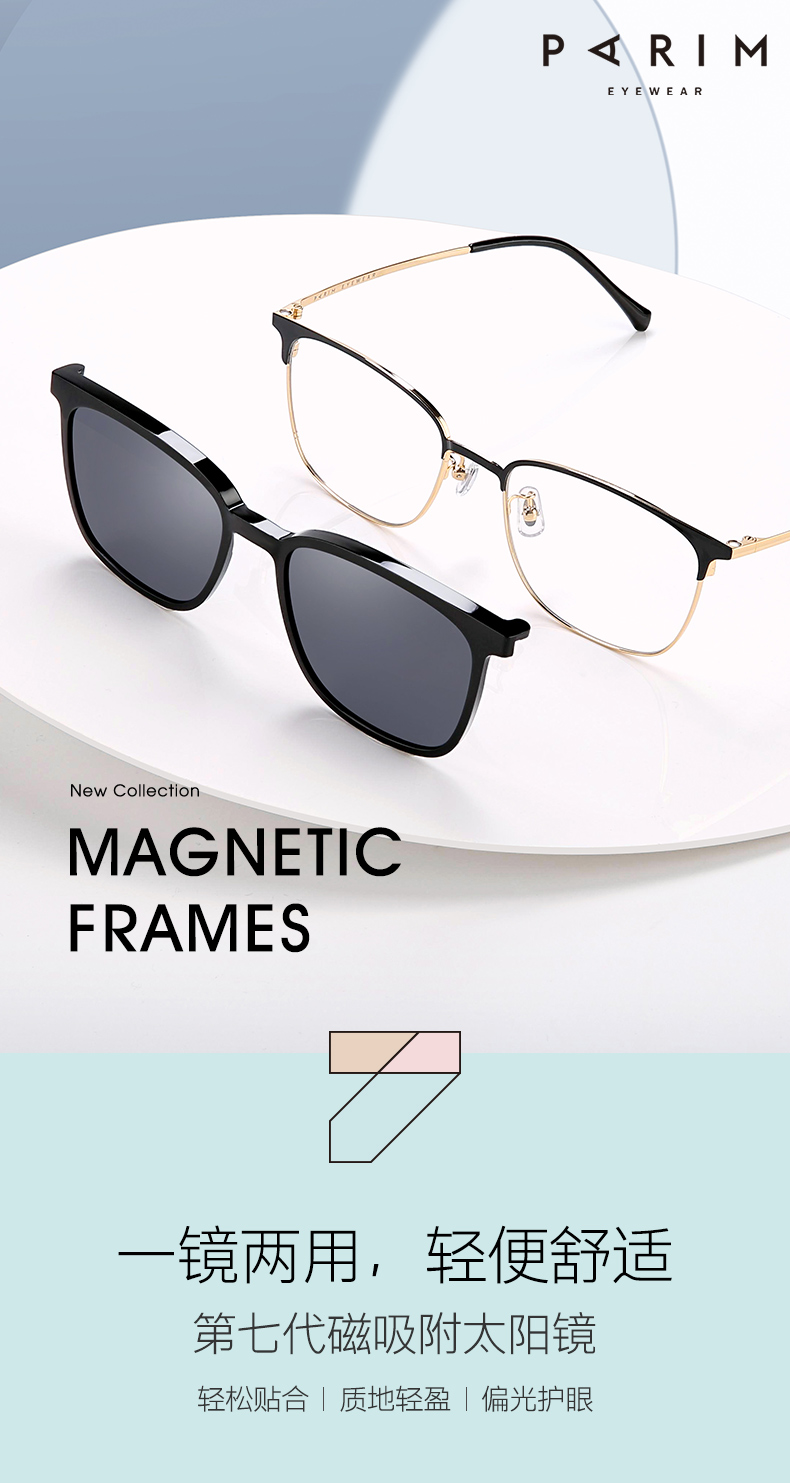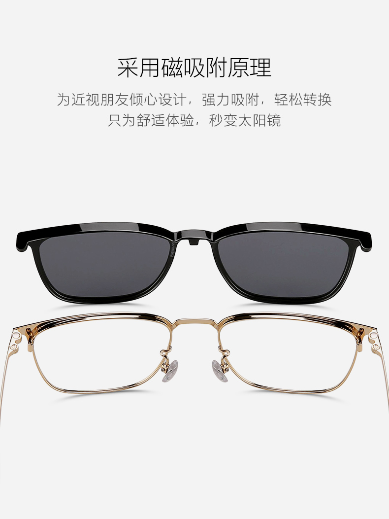 近视眼镜女磁吸墨镜夹片一镜两用派丽蒙新品偏光近视墨镜时舒适轻便眼镜框男 81606 K1-主框:金/黑色;吸镜:黑
