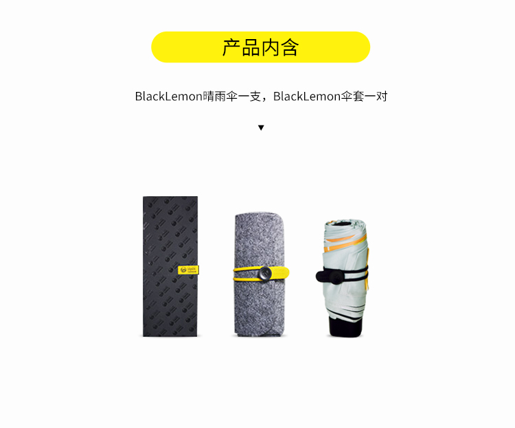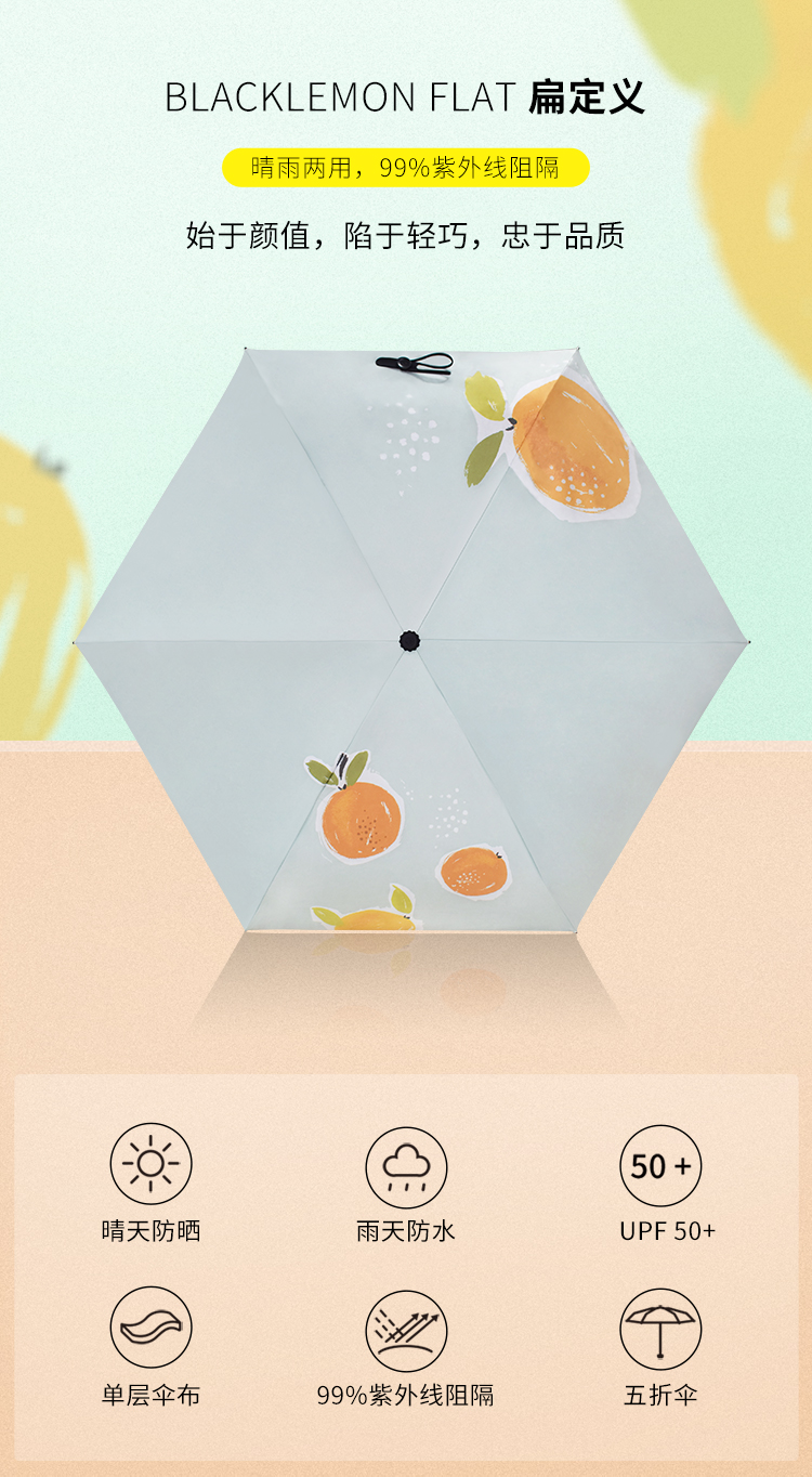 商品名称:黑柠檬 BLACK LEMON 21年春新迷你五折晴雨两用伞防紫外线黑胶防晒太阳伞口袋伞