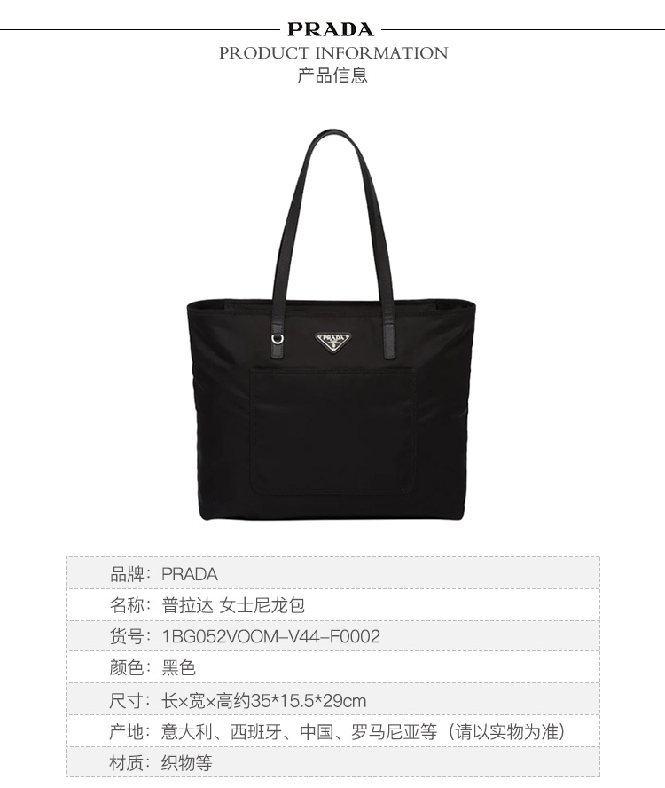 商品名称:PRADA 普拉达 女士黑色尼龙包 1BG052VOOM-V44-F0002
